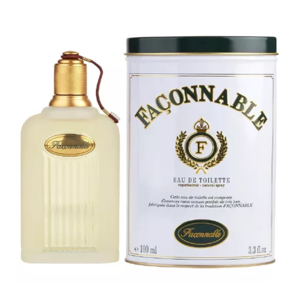 Faconnable de Faconnable es una fragancia de la familia olfativa Almizcle Amaderado Floral para Hombres. Faconnable se lanzó en 1994. Las Notas de Salida son flor de azahar del naranjo, menta y mandarina; las Notas de Corazón son jazmín, rosa y geranio; las Notas de Fondo son sándalo, ámbar y almizcle.
