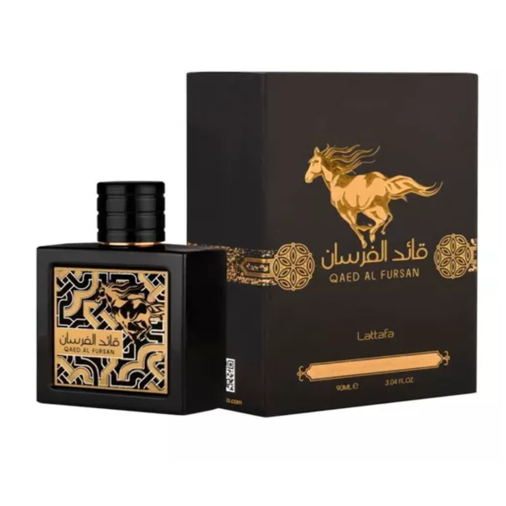 Qaed Al Fursan De Lattafa Perfumes es una fragancia de la familia olfativa aromática para hombres y mujeres. Qaed Al Fursan se lanzó en 2016. Las notas de salida son piña y azafrán; las notas de corazón son jazmín y abeto balsámico; las notas de fondo son ámbar, cedro y madera de oud.